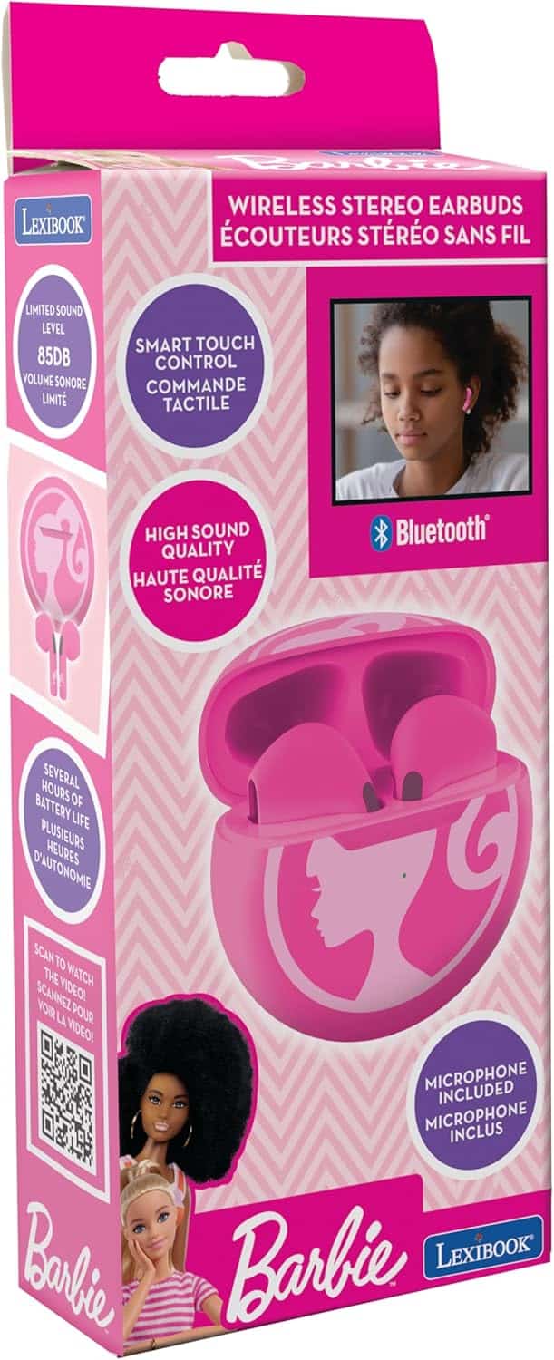 - AURICULARES INALÁMBRICOS BARBIE – Miniauriculares estéreo con estuche de carga en los colores de Barbie, ¡perfectos para los niños!