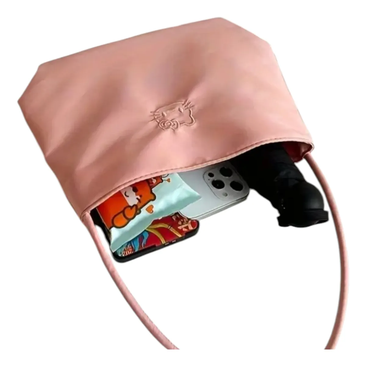 Elegante y adorable bolso de Hello Kitty, ideal para darle un toque dulce y actual a cualquier look. Su diseño minimalista con el logo de Hello Kitty en relieve lo convierte en un accesorio versátil, moderno y atemporal, perfecto tanto para el día a día como para ocasiones especiales.