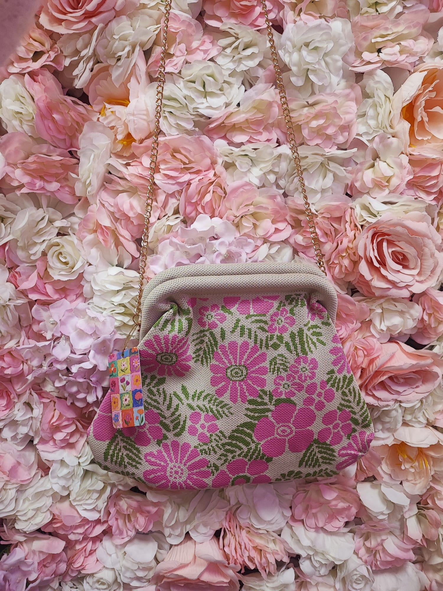 Un bolso pequeño con mucho encanto. Su diseño cuadrado y su estampado con aire vintage lo convierten en el complemento perfecto para cualquier look, desde el más casual hasta el más especial.