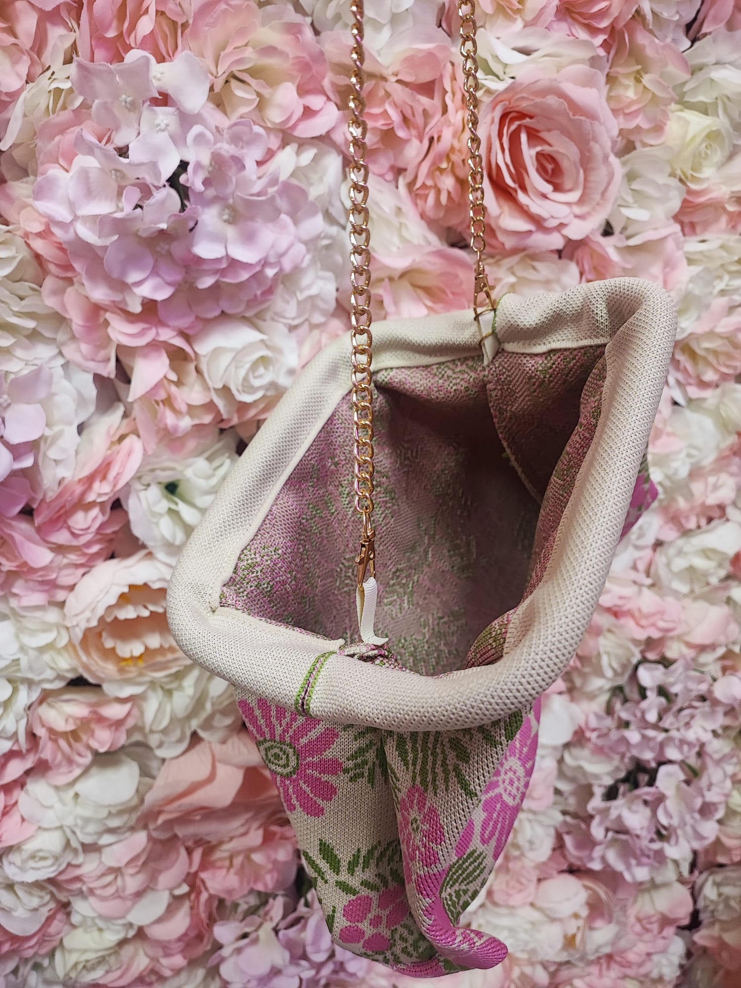 Incluye cadena dorada para hombro
