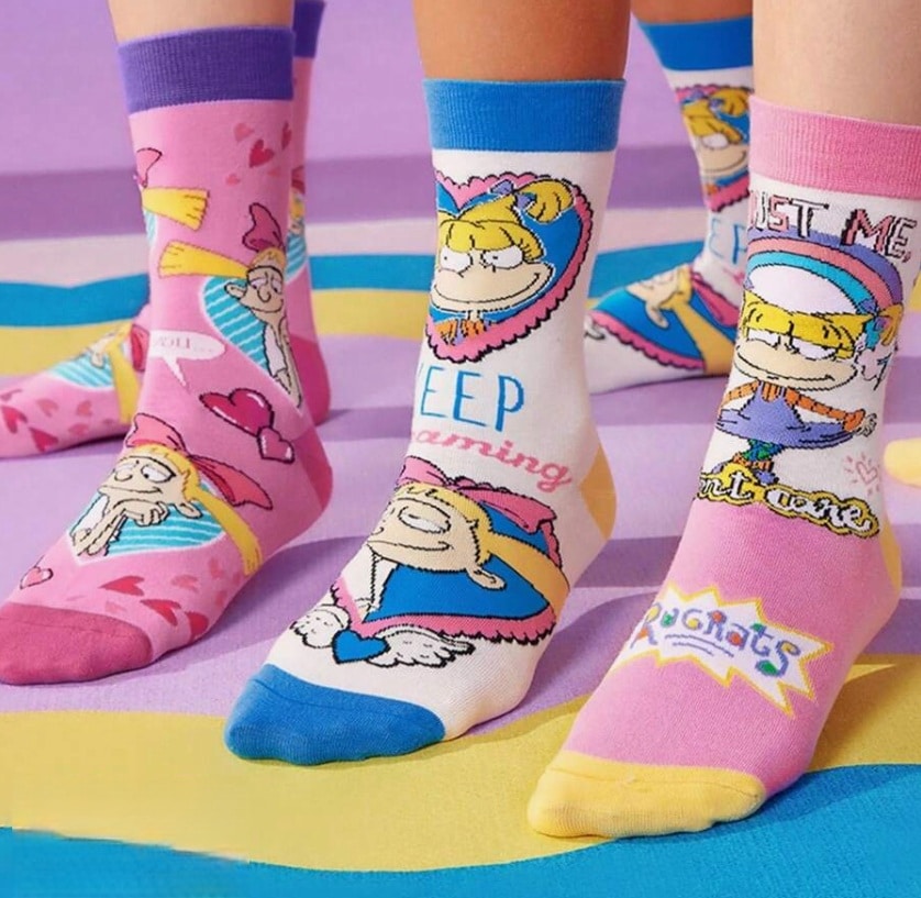 ¡Revive la nostalgia de los 90 con estos divertidos calcetines de los Rugrats y Helga! 🍼💫