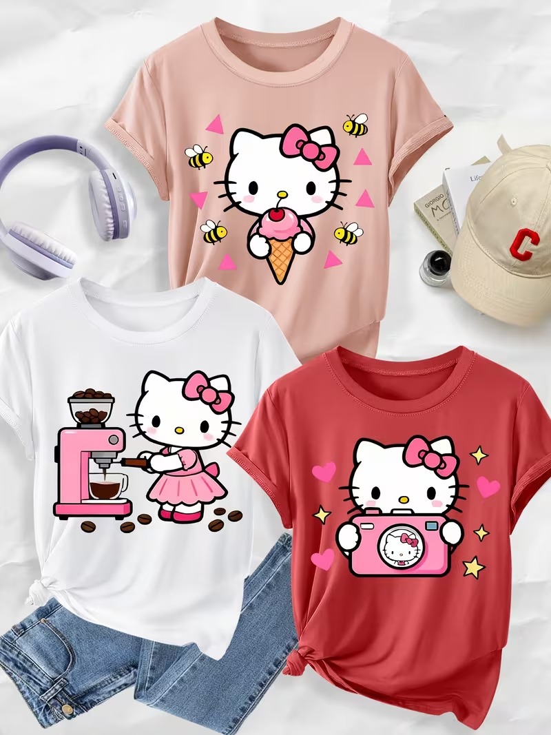 Añade un toque dulce y divertido a tu look con estas camisetas de Hello Kitty 🐱💕. Diseños irresistibles llenos de color y estilo, perfectos para las amantes del universo kawaii.