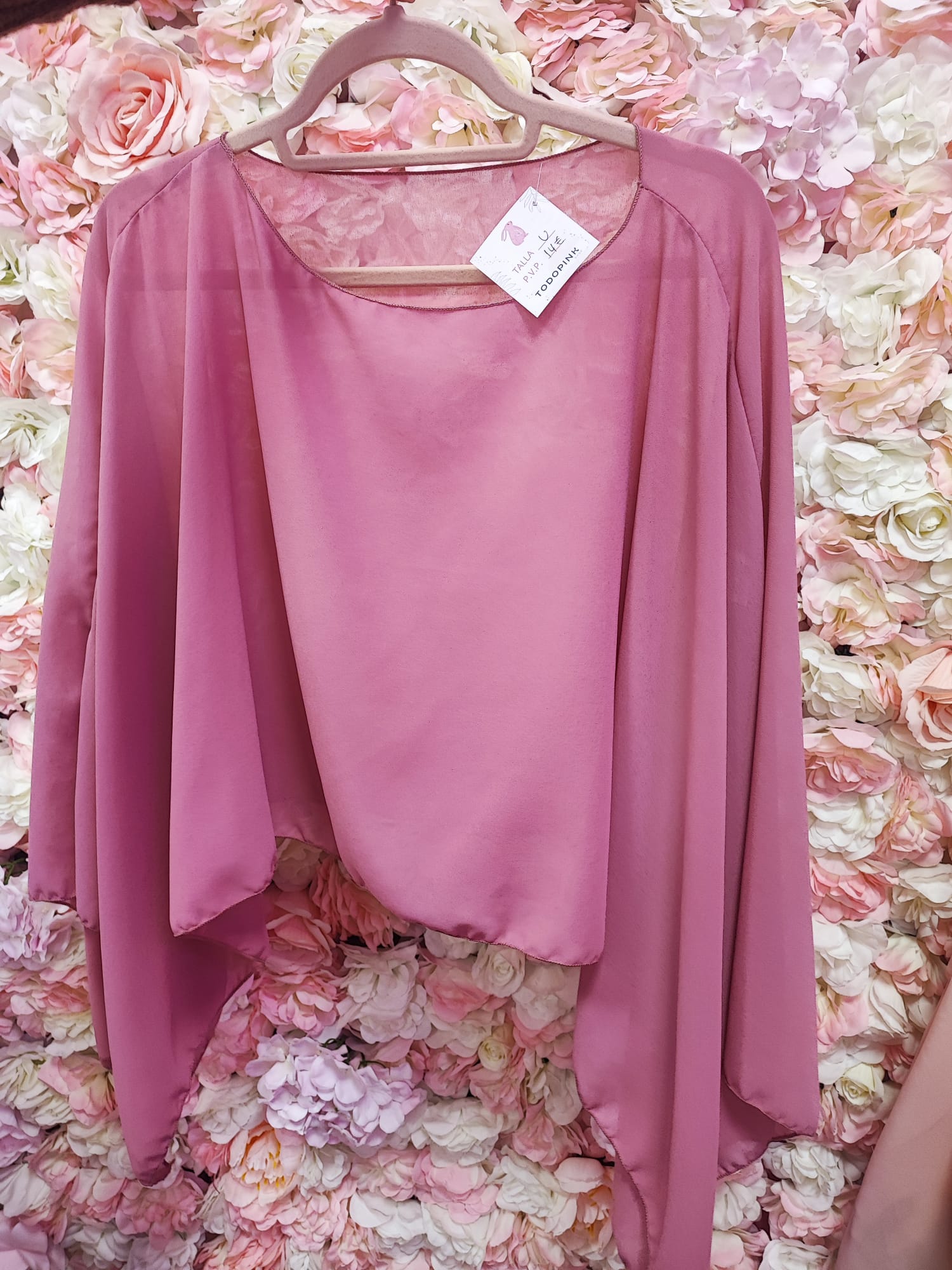 Dale un toque especial a cualquier look con esta capa rosa de tejido ligero, perfecta para transformar un outfit básico en algo elegante y diferente 💖