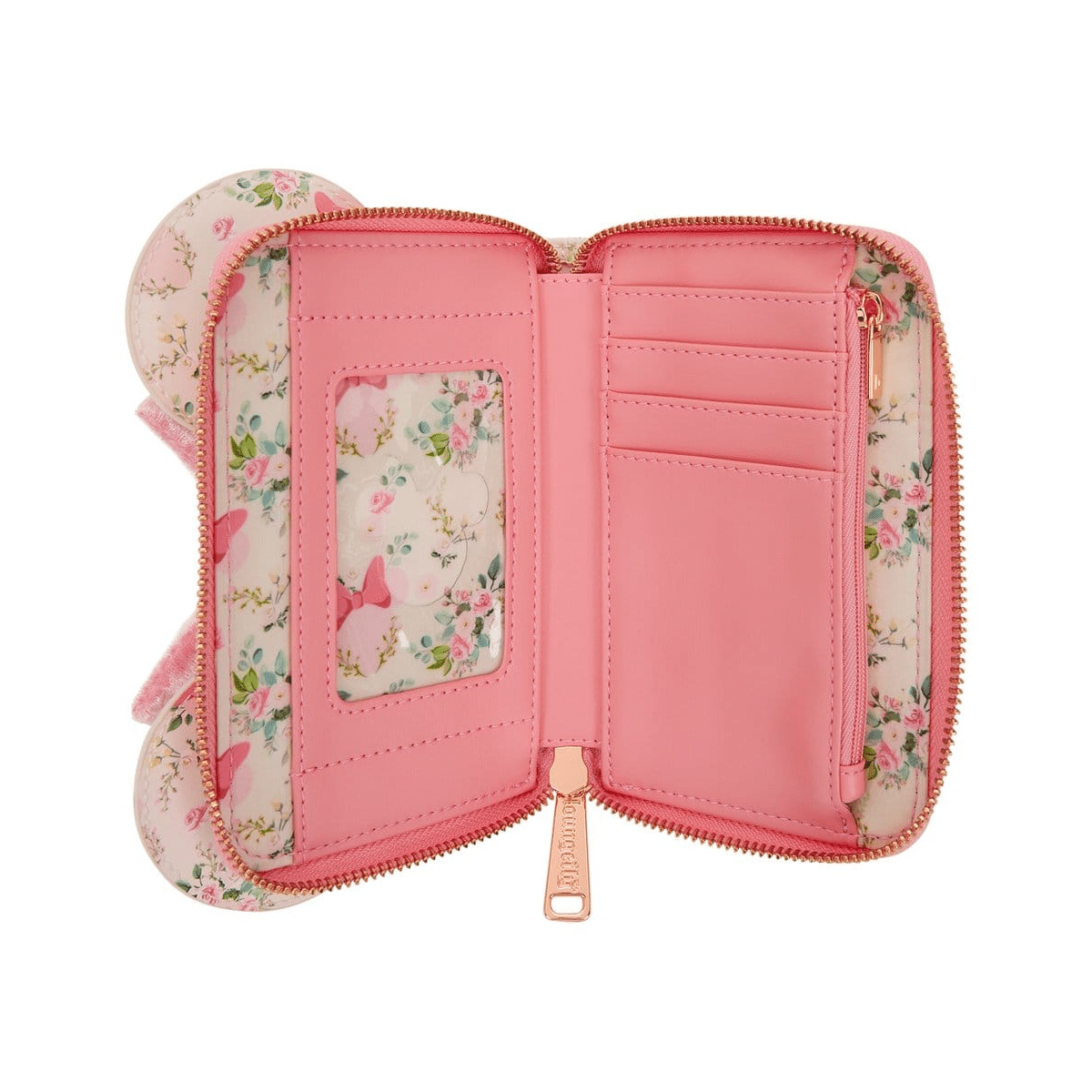 Elegante y encantador monedero de Minnie Mouse con licencia oficial Disney, diseñado por Loungefly, una de las marcas más reconocidas en accesorios de alta calidad. Su delicado estampado floral y el icónico lazo de Minnie en relieve lo convierten en una pieza irresistible para fans de Disney y amantes de los detalles bonitos.
