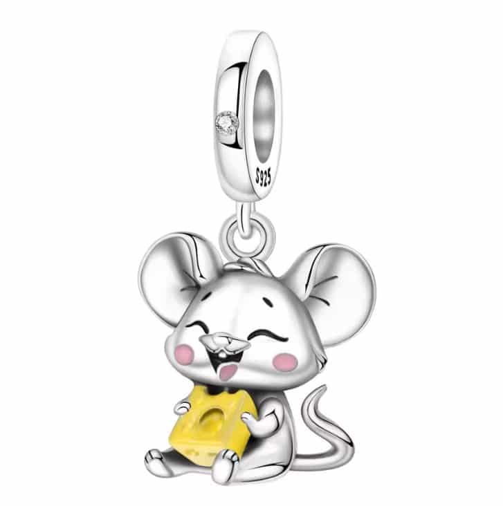 Añade un toque dulce y encantador a tu pulsera con este precioso charm de ratoncito, ideal para amantes de los detalles tiernos y los diseños kawaii. Su expresión adorable y los delicados toques en esmalte rosa lo convierten en una pieza que no pasa desapercibida.