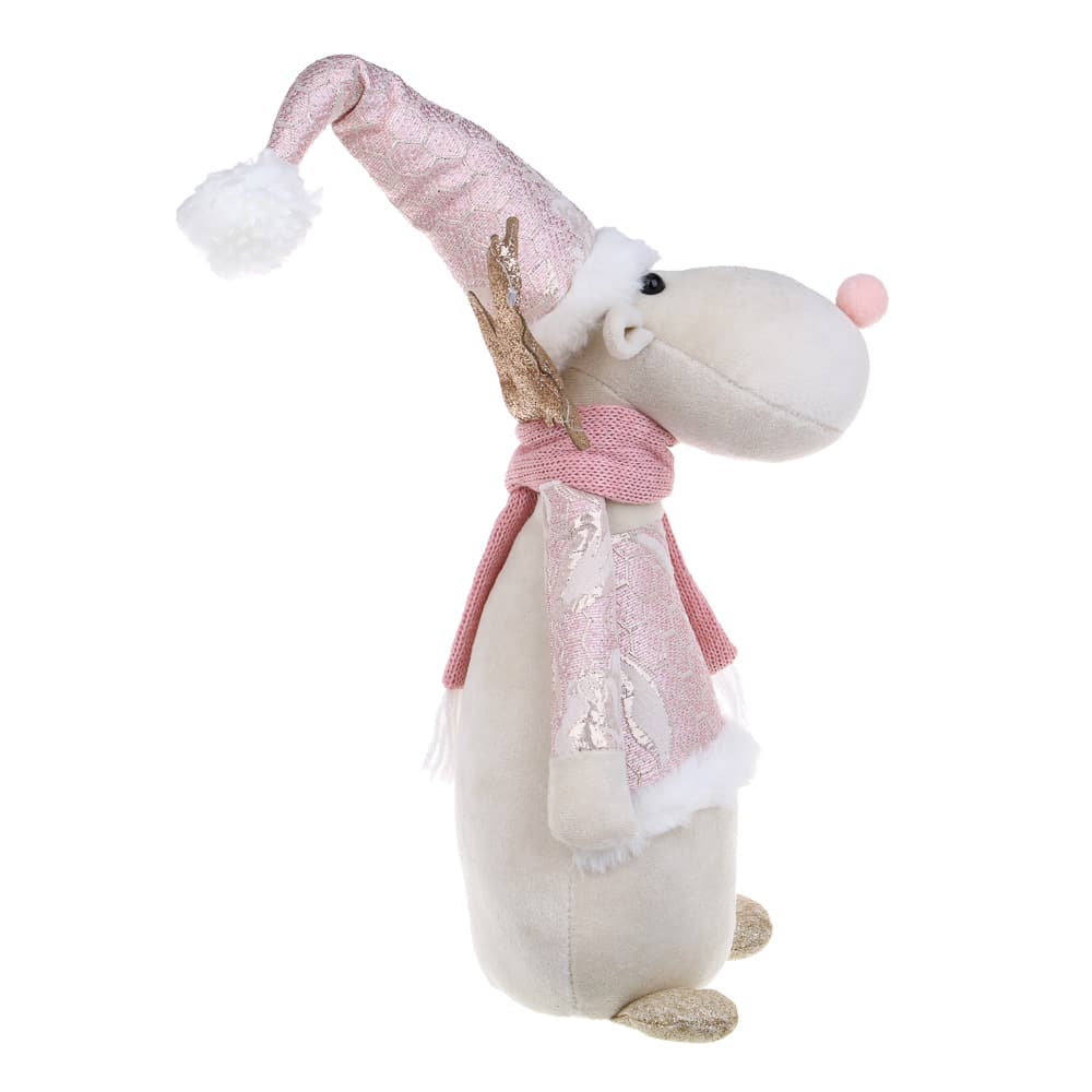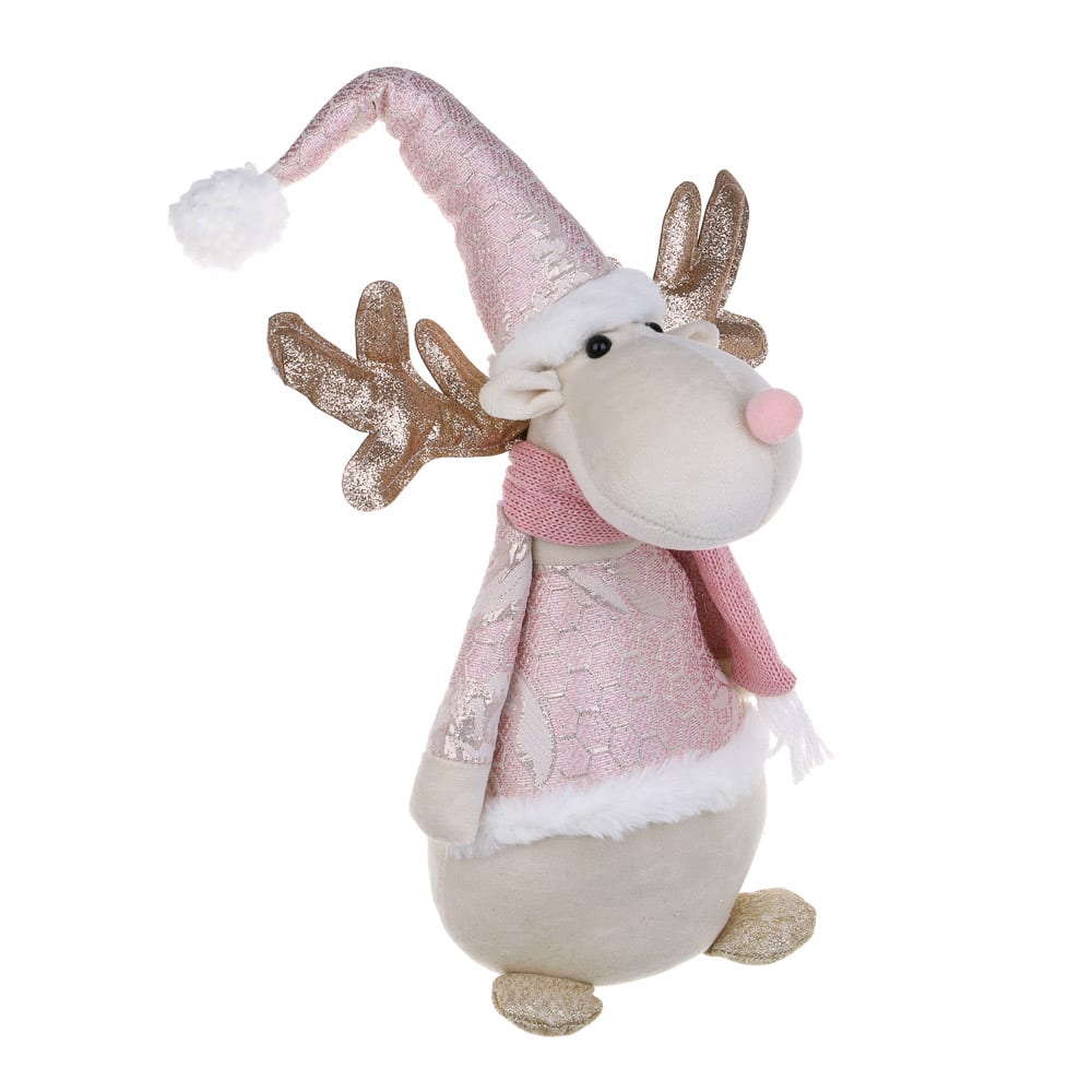 Este encantador ciervo decorativo es la pieza perfecta para aportar dulzura, brillo y un toque elegante a tu decoración navideña. Con su diseño en tonos rosa pastel y detalles dorados con purpurina, se convierte en un adorno ideal para quienes buscan una Navidad con estilo suave y mágico.