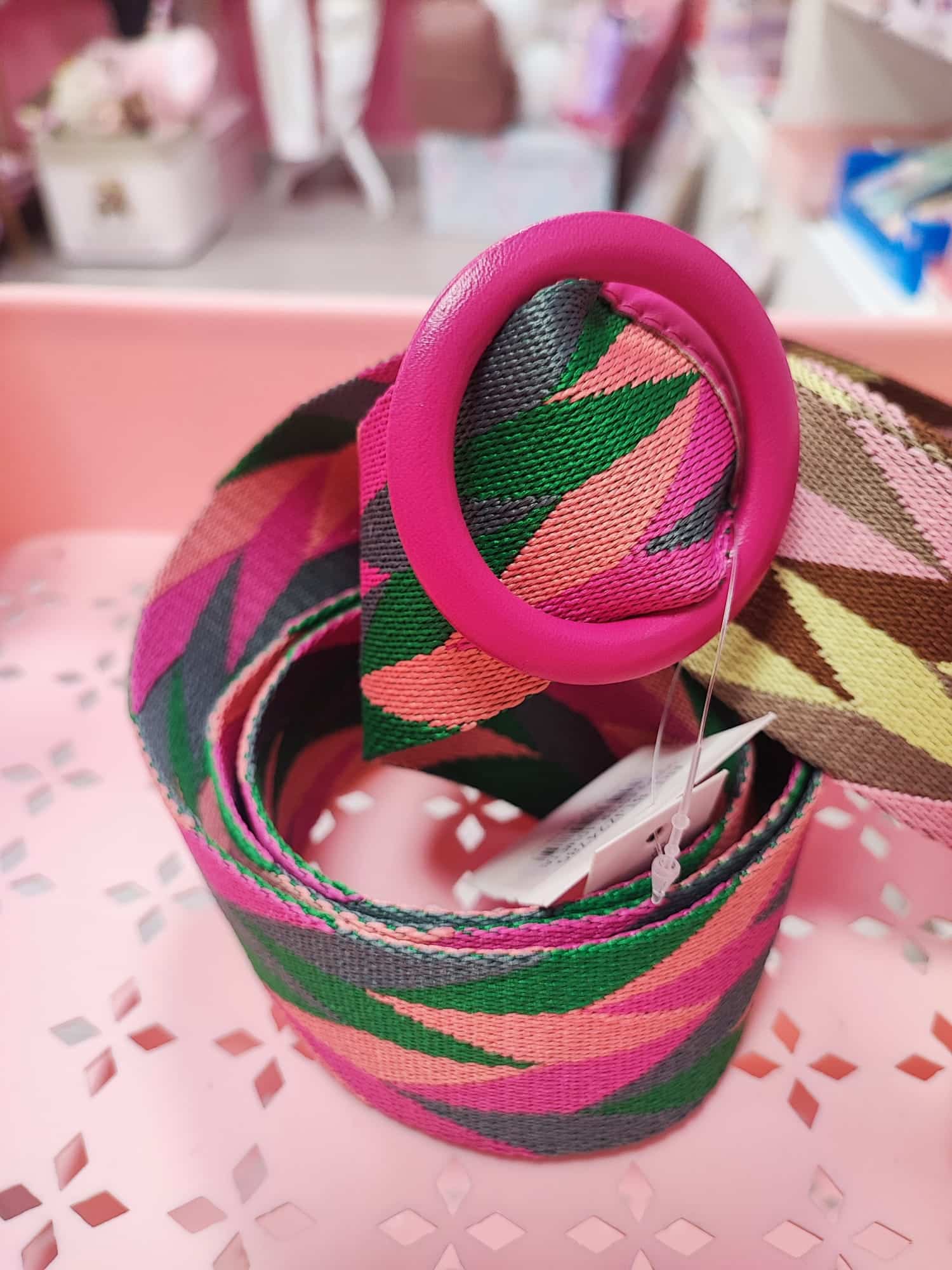 Viaja a los años 70 con nuestro cinturón retro de 110 cm, disponible en dos irresistibles colores: rosa pastel o fucsia vibrante.