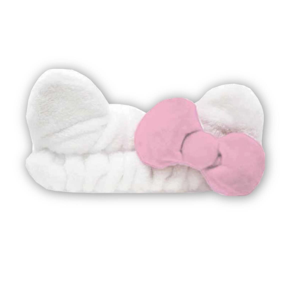 Esta diadema inspirada en Hello Kitty es perfecta para tus momentos de skin care, maquillaje o incluso para aplicar mascarillas sin que el pelo moleste. Su diseño con orejitas y lacito rosa le da un toque tierno y divertido que te encantará 💕