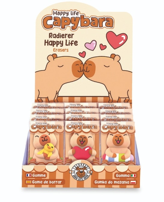 Haz que estudiar y dibujar sea mucho más divertido con esta adorable goma de borrar con forma de capibara. Su diseño kawaii y sus diferentes modelos la convierten en un imprescindible para peques, estudiantes y amantes de la papelería bonita.