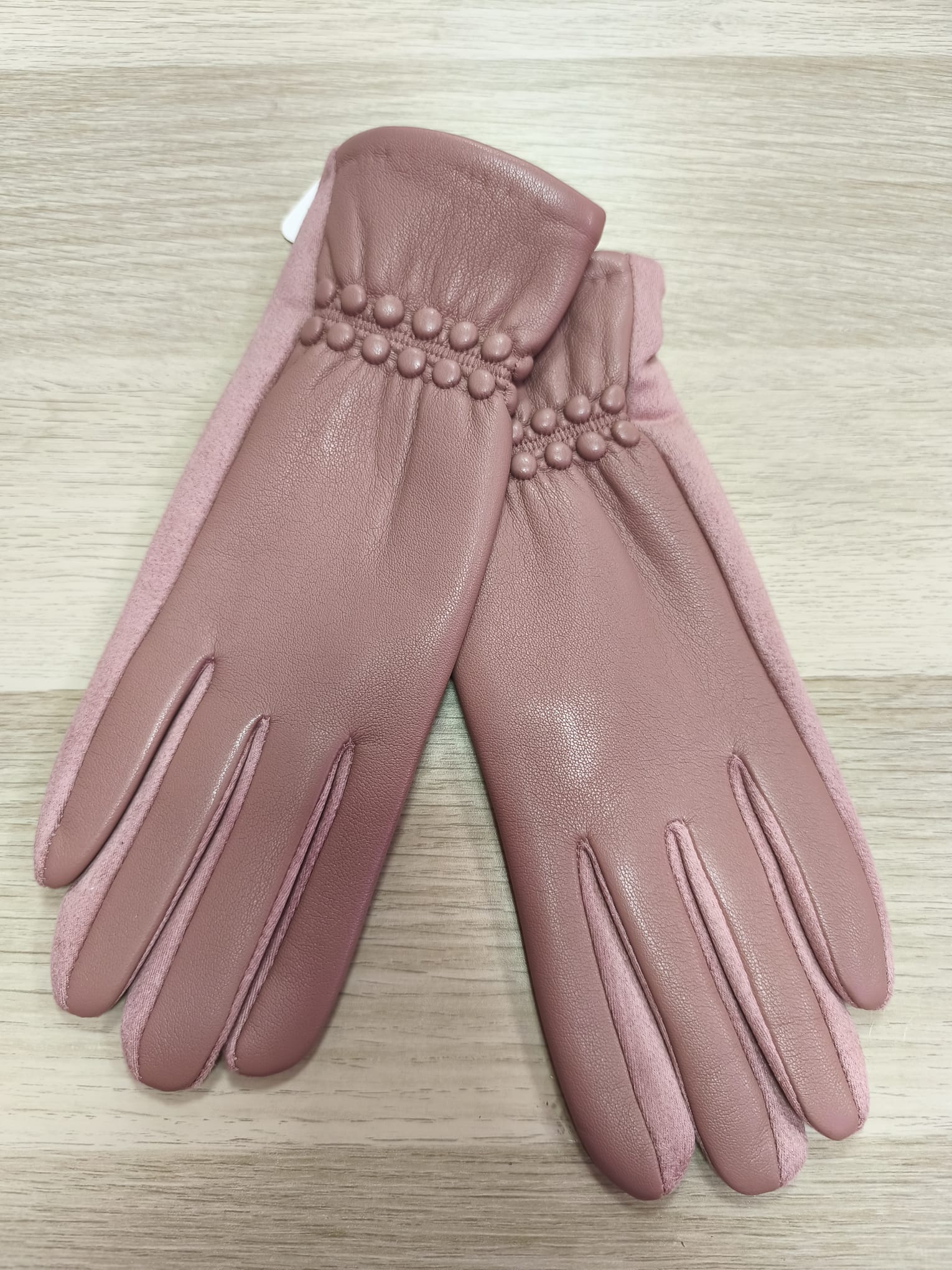 Elegantes y funcionales, estos guantes de polipiel en tono rosa maquillaje destacan por su diseño sencillo con un detalle de tira y hebilla metálica en la muñeca, que aporta un toque moderno y sofisticado.