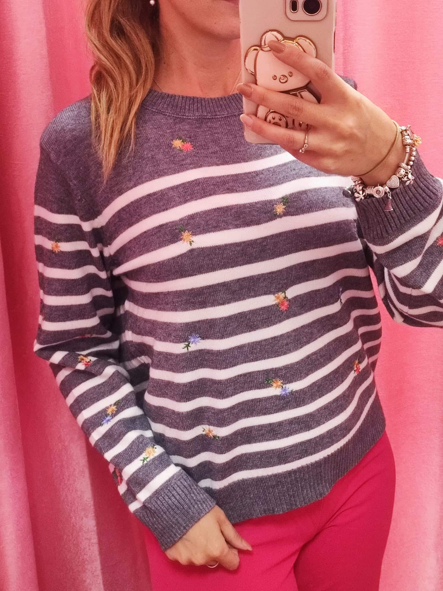 Dulce, cómodo y con mucho amor 💖 Este jersey beige con pequeños corazones en tonos tierra y rosados es ideal para dar un toque romántico y acogedor a tus looks.