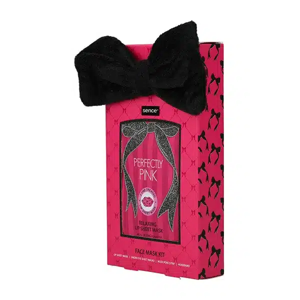 Desempaqueta los productos esenciales perfectos para una acogedora noche de cuidado personal. Esta bonita caja incluye una mascarilla labial, una mascarilla para debajo de los ojos y una tira para los poros de la nariz, todas ellas diseñadas con un bonito estampado de lazos. Mímate y prepárate para lucir una piel impecable y radiante.