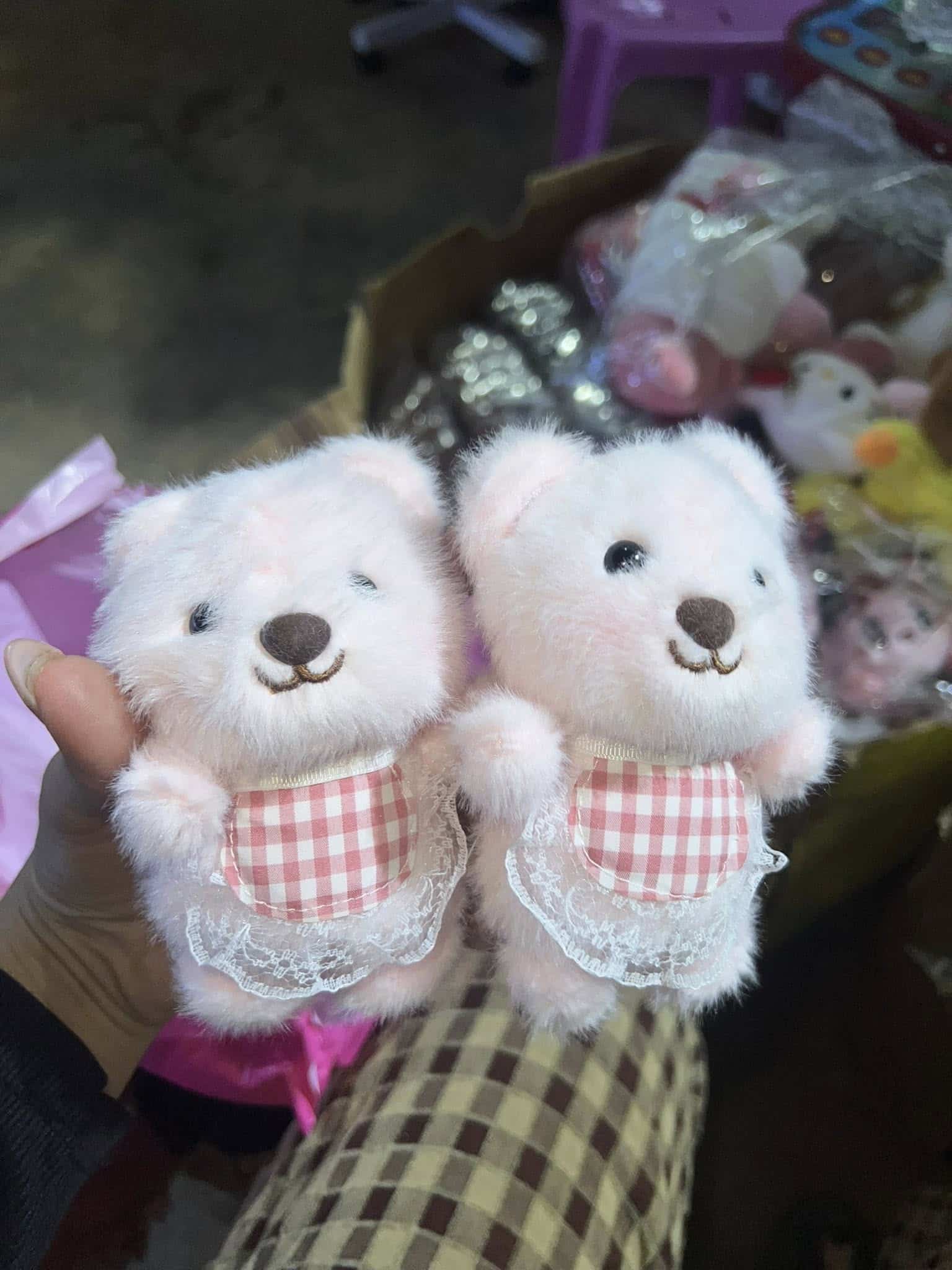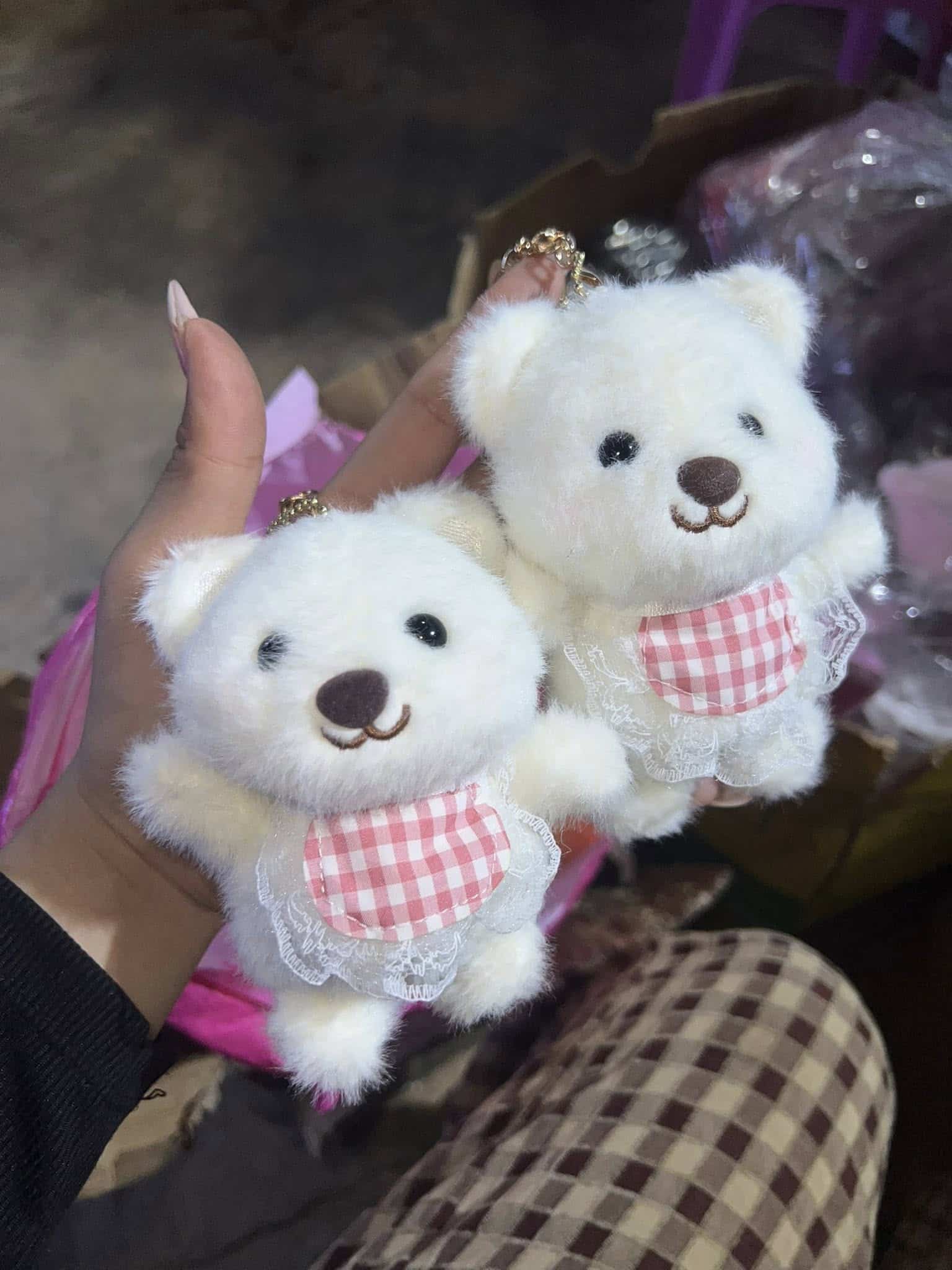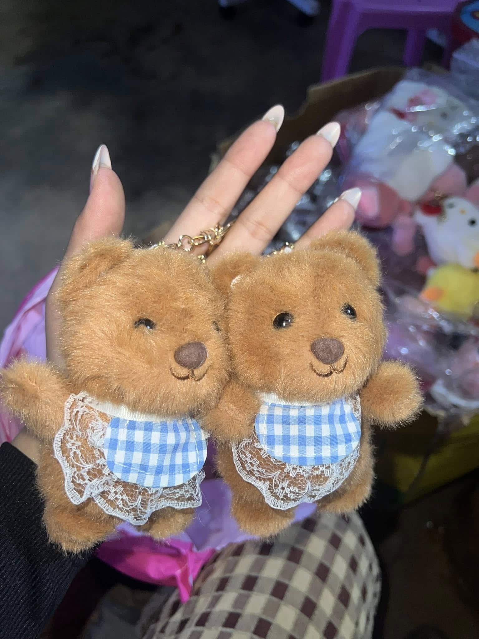 Añade un toque de ternura a tus llaves, bolso o mochila con este adorable llavero de osito de peluche. Su diseño suave y dulce, con babero de cuadritos y delicado encaje, lo convierte en un accesorio irresistible y perfecto para regalar.