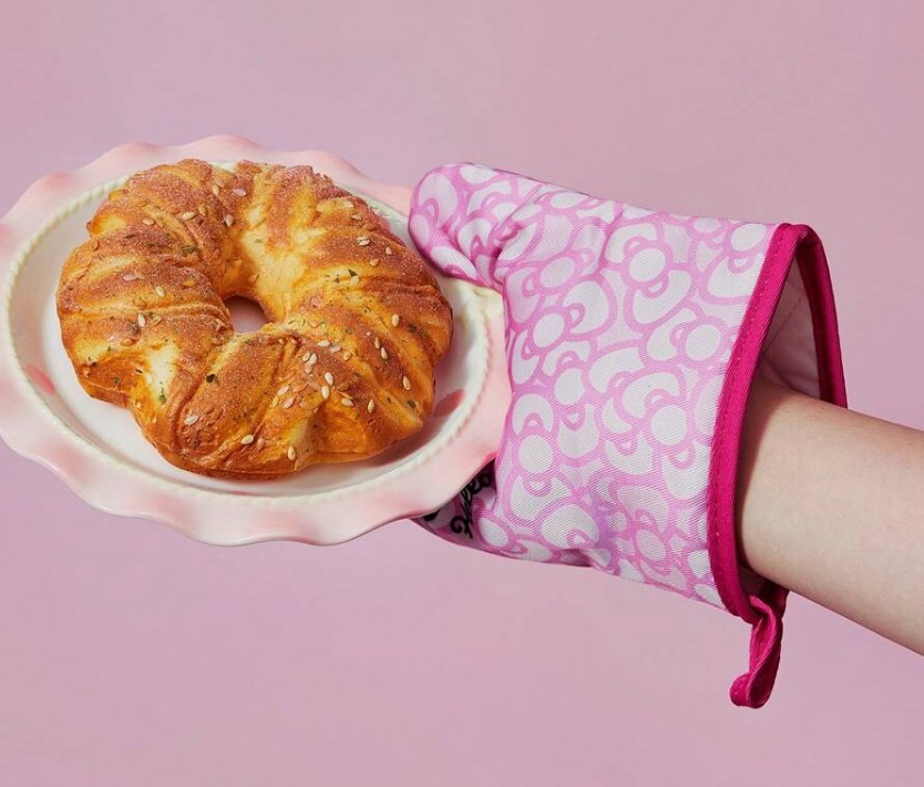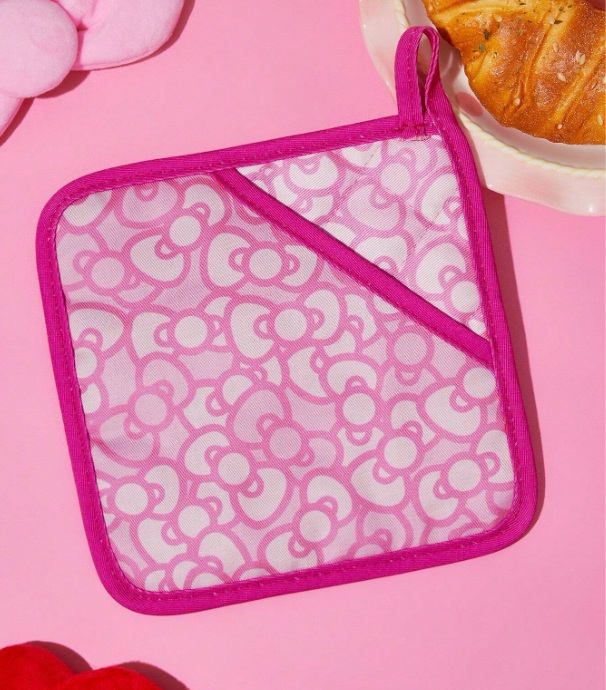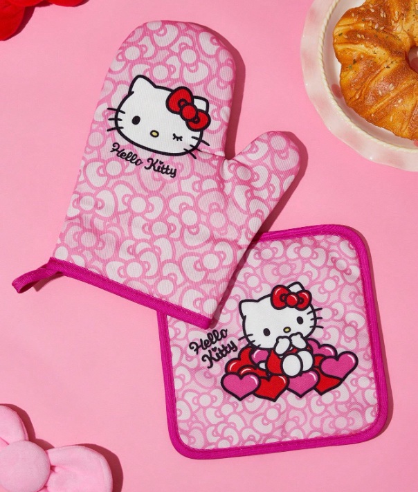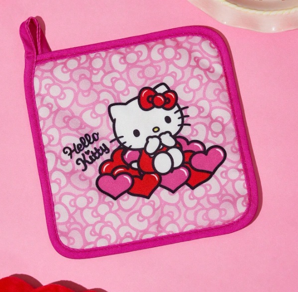 Dale un toque dulce y adorable a tu cocina con esta manopla y agarradera de Hello Kitty. Su diseño en tonos rosas, con corazones y la icónica gatita, lo convierte en el complemento perfecto para quienes aman los detalles kawaii.