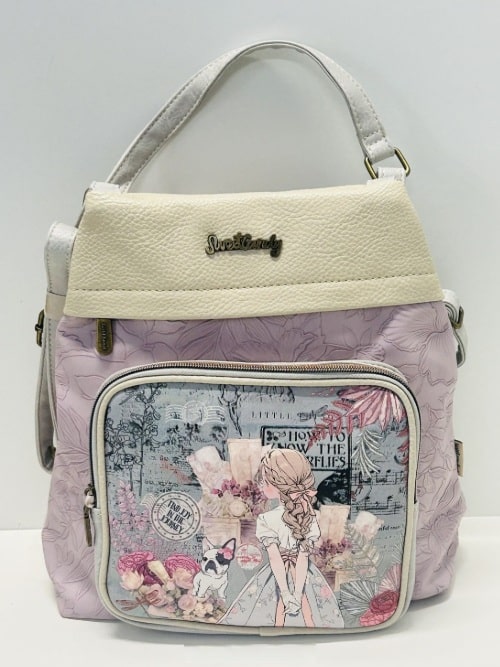Mochila sweet candy, fabricada en polipiel, compartimento principal con cierre antirrobo, bolsillos delantero y trasero, varios compartimentos interiores para llevar todas tus pertenencias bien organizadas¡, También lleva un bolsillo interior con cierre de cremallera