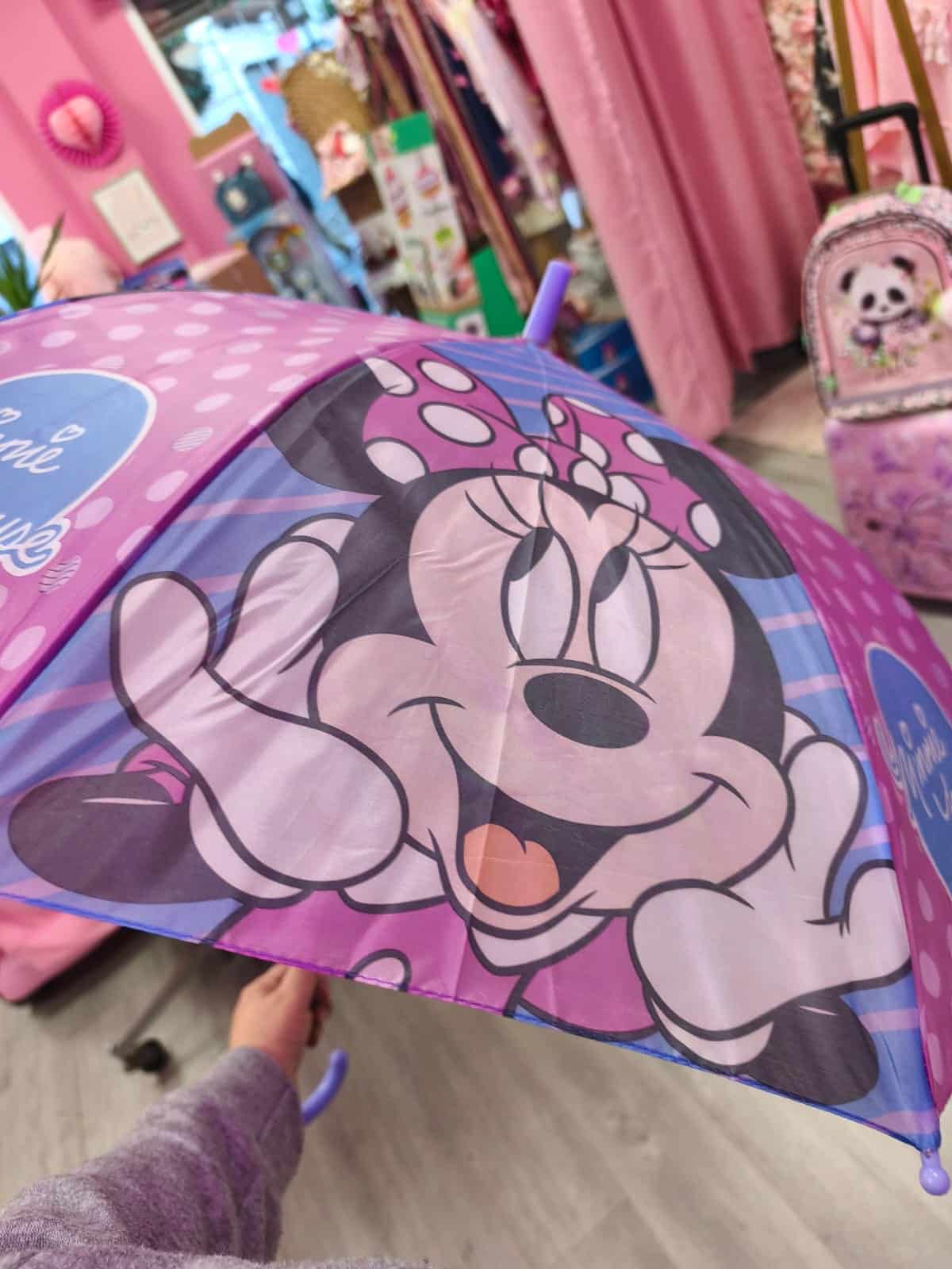 Con este paraguas infantil para Niña con cúpula transparente y estampado con sus personajes favoritos como los de Minnie, su pequeña irá protegida de la lluvia y segura sin mojarse de camino al cole mientras la acompañan sus ídolos – Licencia Oficial Disney | Medidas 71.0 x 63.0 x 71.0 cm ¿Estás buscando un paraguas de colores para tu pequeña, que se convierta en su mejor aliado durante los días de lluvia? con estos paraguas infantiles transparentes darás en el clavo y tu hijaquedará encantada mientras que los padres os quedáis tranquilos sabiendo que vuestra pequeña va protegida de la lluvia sin mojarse Este paraguas de niña cuenta con una varilla robusta y resistente de 45 cm de longitud que se adaptará a la altura de su pequeña y le protegerá con garantías de la lluvia y el viento que se presenten durante las tormentas de otoño o el frío invierno | Las 8 varillas que lo conforman aportan solidez a este paraguas Disney perfecto para comenzar las aventuras de este nuevo curso!! ¿No encuentras el regalo adecuado para los peques de la casa ahora que la vuelta al cole se acerca? No lo dudes más y acierta con estos paraguas bonitos y originales de la colección Disney que se convertirán en su complemento favorito del año!