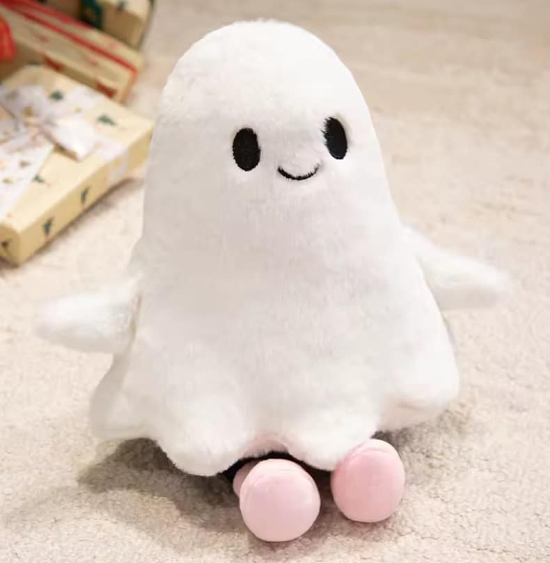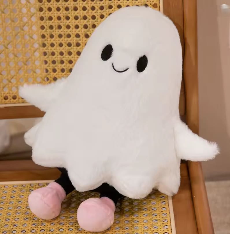 Este peluche de fantasma es extremadamente suave, esponjoso y adorable hasta decir basta 🥹✨. Con su carita sonriente y sus zapatitos rositas, se convierte en el compañero ideal para dormir, decorar tu habitación o coleccionar peluches cute.