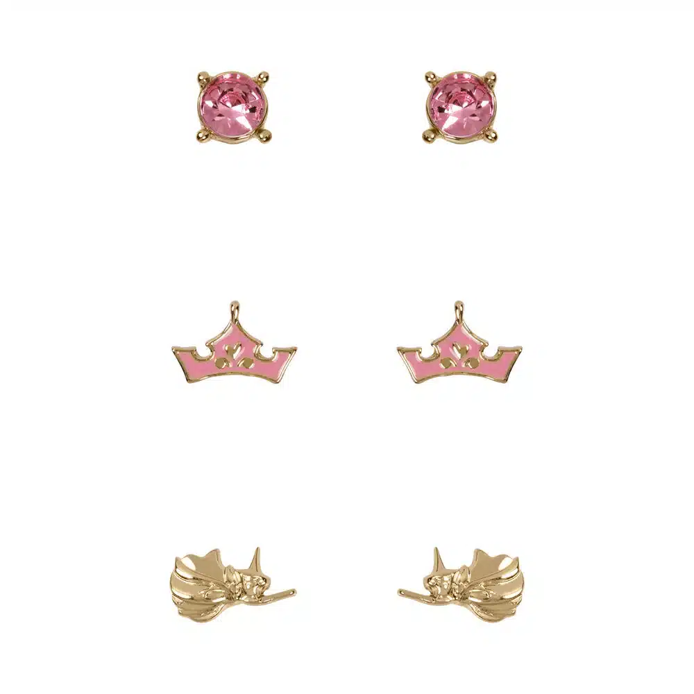 Luce la magia de los cuentos de hadas con este encantador set de pendientes inspirado en La Bella Durmiente. Incluye tres pares diferentes para combinar según tu estilo: