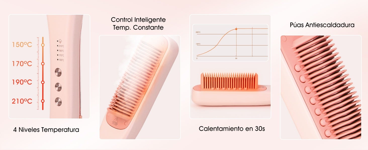- 4 niveles de temperatura inteligentes: ajustable de 150 °C a 210 °C para adaptarse perfectamente a todo tipo de cabello (fino, grueso o químicamente procesado) asegurando resultados perfectos sin daños.