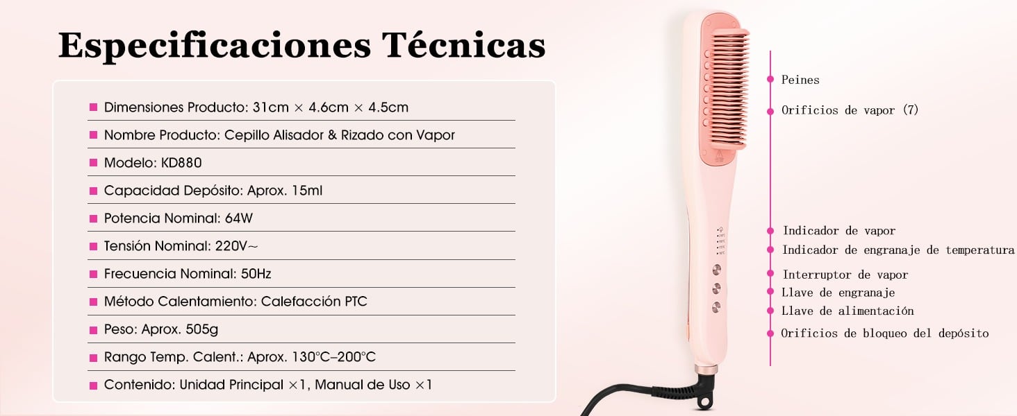 - Hidratación al vapor profesional: la tecnología Hydro-Infusion emite vapor suave (0,5 ml/min) para hidratar el cabello profundamente, eliminar el frizz y dar un brillo natural.