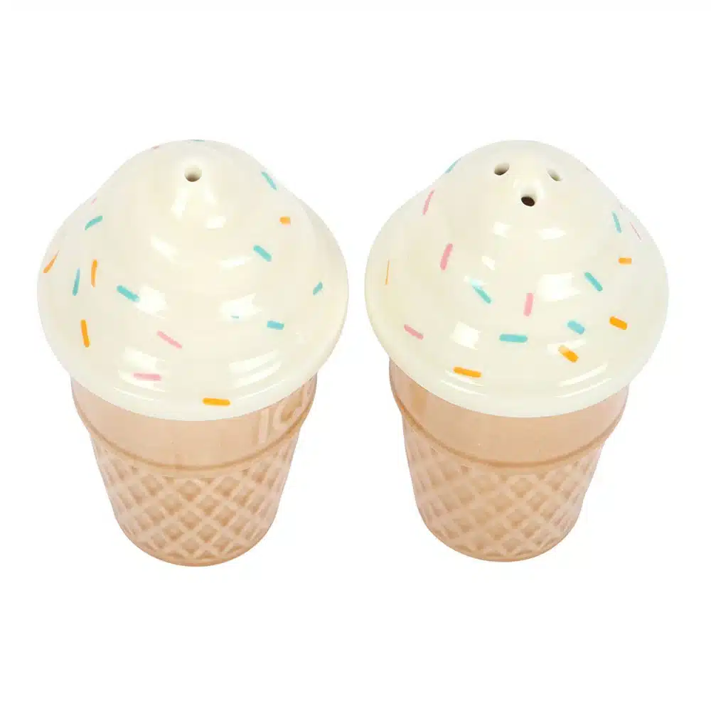 Dale un toque dulce y divertido a tu mesa con este original set de salero y pimentero con diseño de helado. Fabricados en cerámica y con un acabado realista lleno de color, son perfectos para sorprender a tus invitados y convertir cualquier comida en un momento especial.