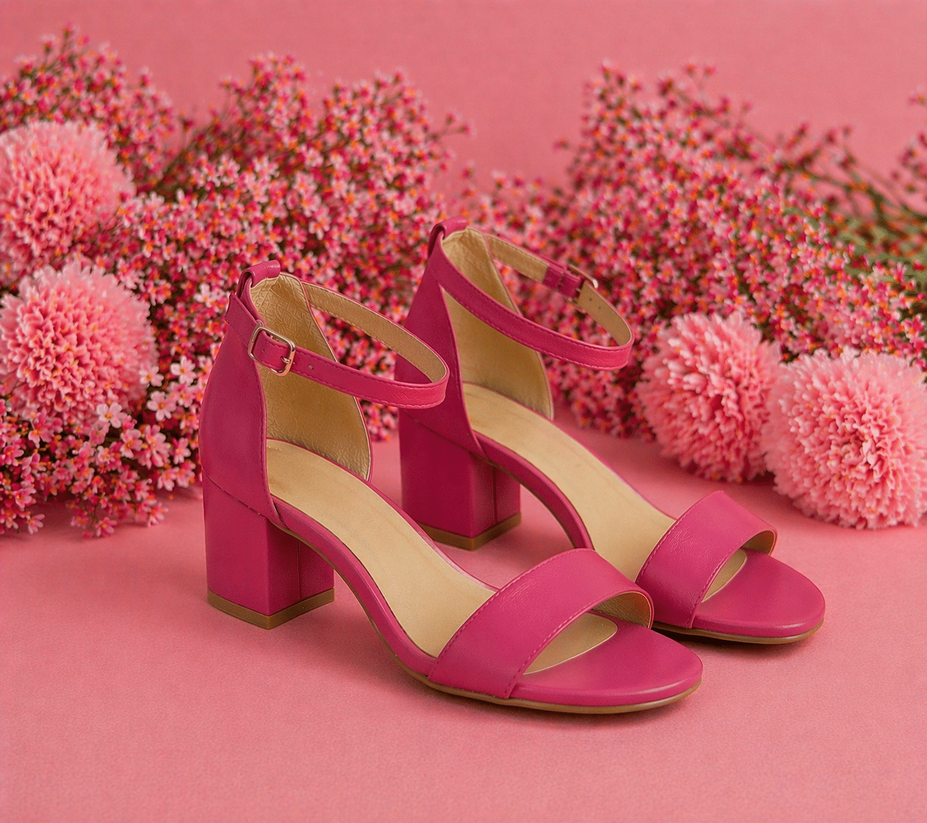 Dale un toque especial a cualquier look con estas sandalias en tono rosa fucsia, perfectas para destacar con estilo y comodidad. Su diseño minimalista con tira delantera y pulsera al tobillo estiliza el pie y aporta un aire elegante y femenino.
