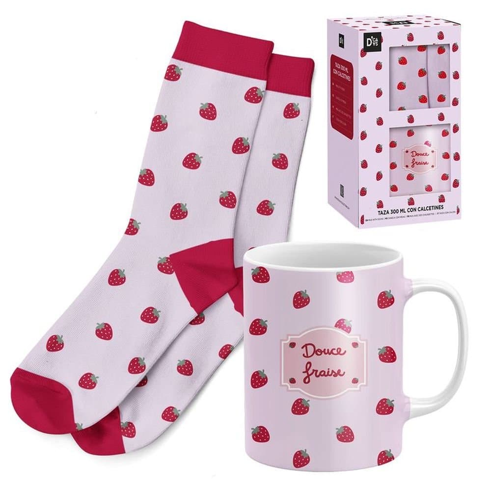 El detalle perfecto para sorprender con dulzura 🍬✨ Este precioso set combina una taza y calcetines a juego con un diseño de fresitas súper coqueto… ¡ideal para enamorar!