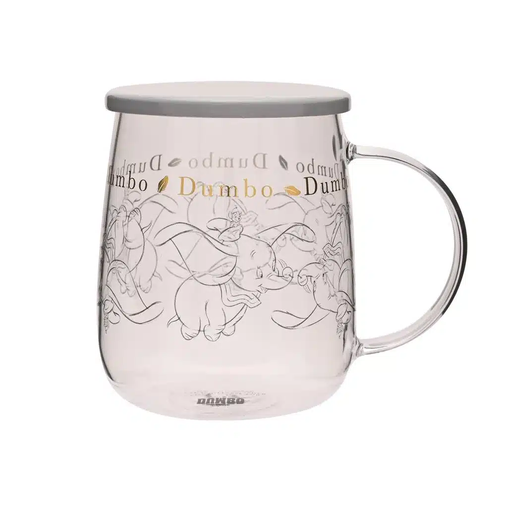 Esta taza transparente presenta un caprichoso dibujo de Dumbo y sus amigos elefantes, junto con una elegante tapa gris. Sumérgete en la nostalgia con cada sorbo, es un regalo encantador o un recuerdo para los fans de Disney de todas las edades.