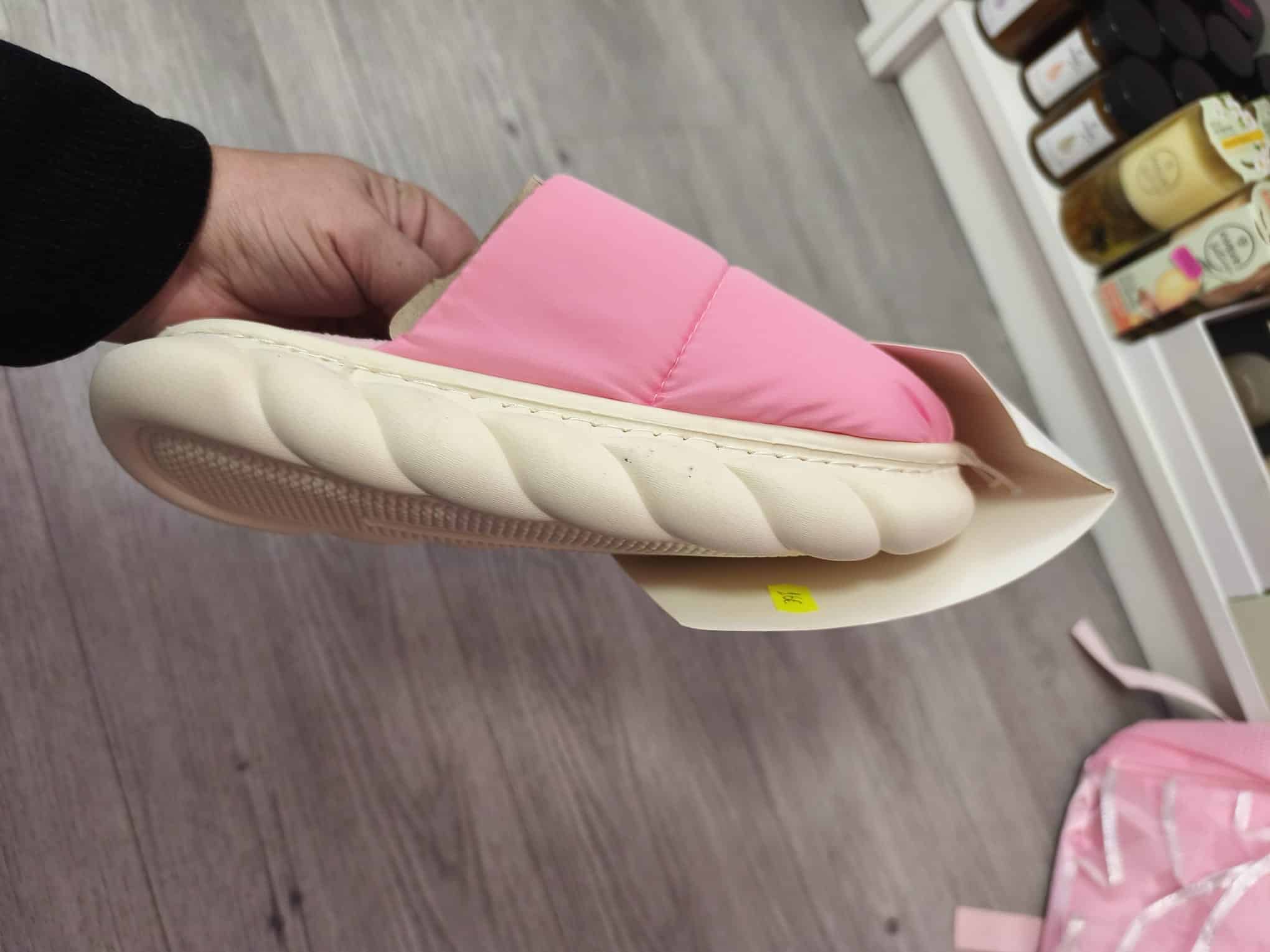 Con su diseño acolchado en tono rosa pastel y suela mullida tipo “nube”, son ideales para caminar por casa con la sensación de ir flotando.